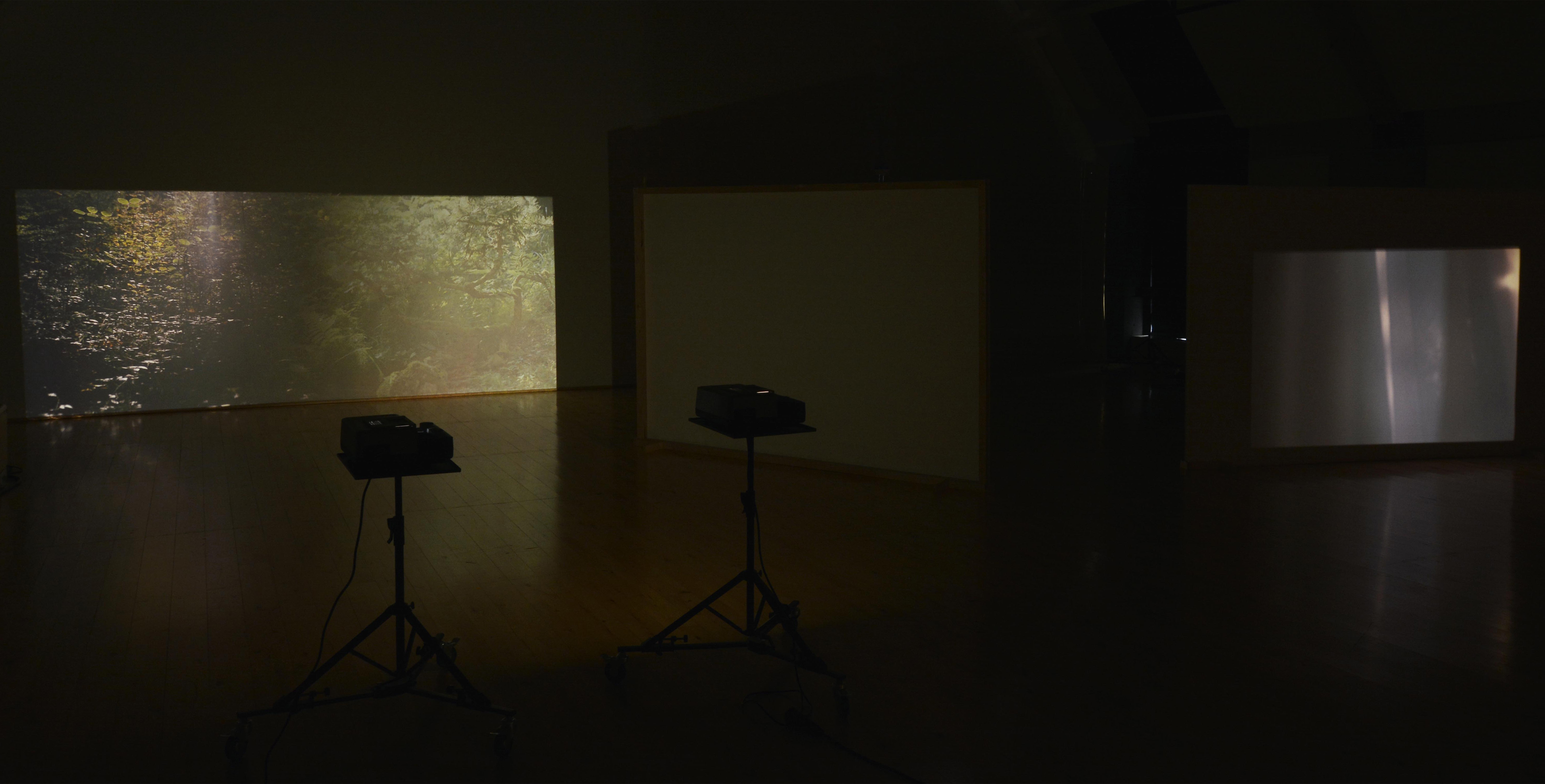 You witness a slow and meticulous compositional process. Images are carefully brought into resonance with time, space and sound, while you stroll to find new ways and places in space.